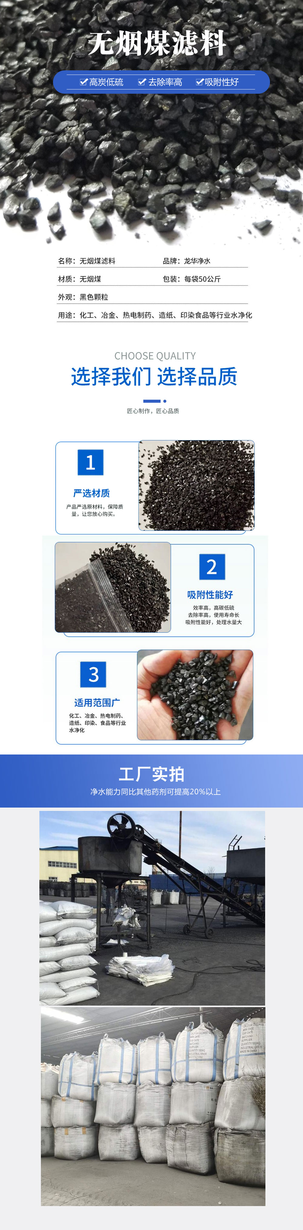 外觀光澤好,呈不規(guī)則顆粒狀,機(jī)械強(qiáng)度高,抗壓性能好,化學(xué)性能穩(wěn)定,不含有毒物質(zhì),不易磨損,在酸性、中性、堿性水中均不溶解,另外無煙煤顆粒表面粗糙,有良好的吸附能力,孔隙率大(>50%),有較高的含污能力,因質(zhì)輕,所需反沖洗強(qiáng)度較低,可節(jié)省大量反沖洗水量及電能。